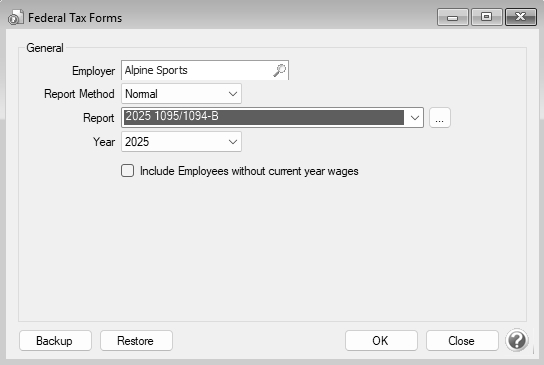 1. Select Reports > Federal & State Payroll Forms & Reports > Federal Tax Forms.