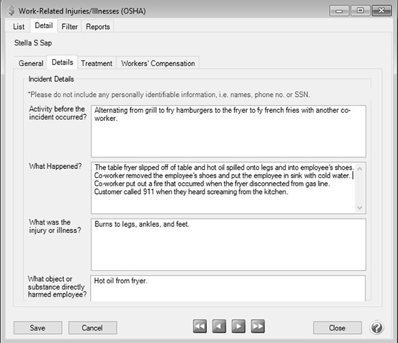 There is also a Work-Related Injuries/Illnesses (OSHA) module available for CenterPoint Payroll. This is used to track information about employee injuries and illnesses, specific details regarding the incident, treatment, and workers' compensation claims. The Employee Work-Related Injury and Illness Summary report allows you to report on the information entered into the module.