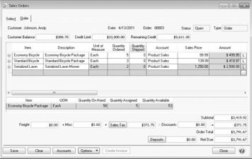 During invoice and sales order entry (Processes > Sales > Customer Invoices or Customer Invoices (Detail)) and (Processes > Sales > Sales Orders), many fields are available in the data entry grid. If you included all of the available fields, you would need to scroll left/right to view each of them. Another option is to display the Information Grid at the bottom of the screen. You can then select which fields display in the normal data entry grid (normally just those that you need to enter information into) and which fields display in the Information Grid at the bottom. The Information Grid will display additional information regarding the line that is selected in the data entry grid. To display the Information Grid, click the Options button and then select Show Information Grid. The grid can be customized to display all columns (except for button type columns) that the standard data entry grid displays, but they will be read-only. The grid can also be resized and will be saved so that the next time the screen is displayed the same columns are displayed on the read-only grid.