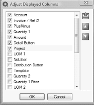 Customizing the Columns Displayed in the Transaction Entry Grids