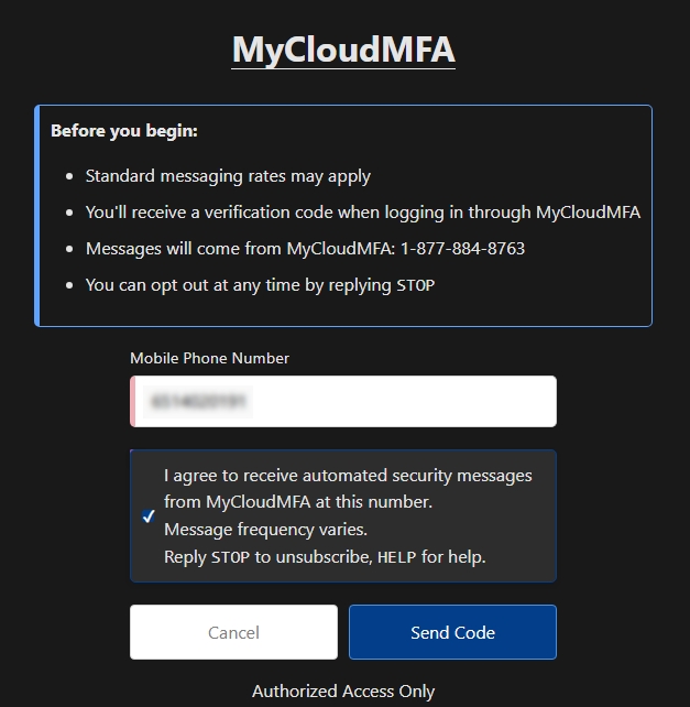 - From your web browser, enter https://mycloudmfa.com/ and sign in with your cloud credentials.