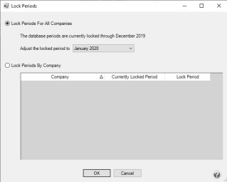 - Select whether you want to Lock Periods for All Companies or Lock Periods By Company.