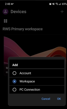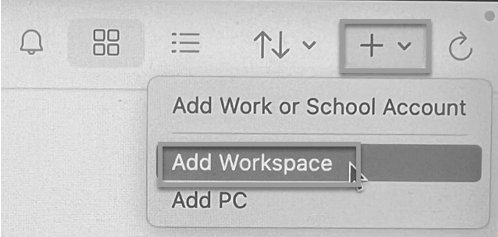 Windows App app on your device. - Click the + in the top right of the first displayed screen.