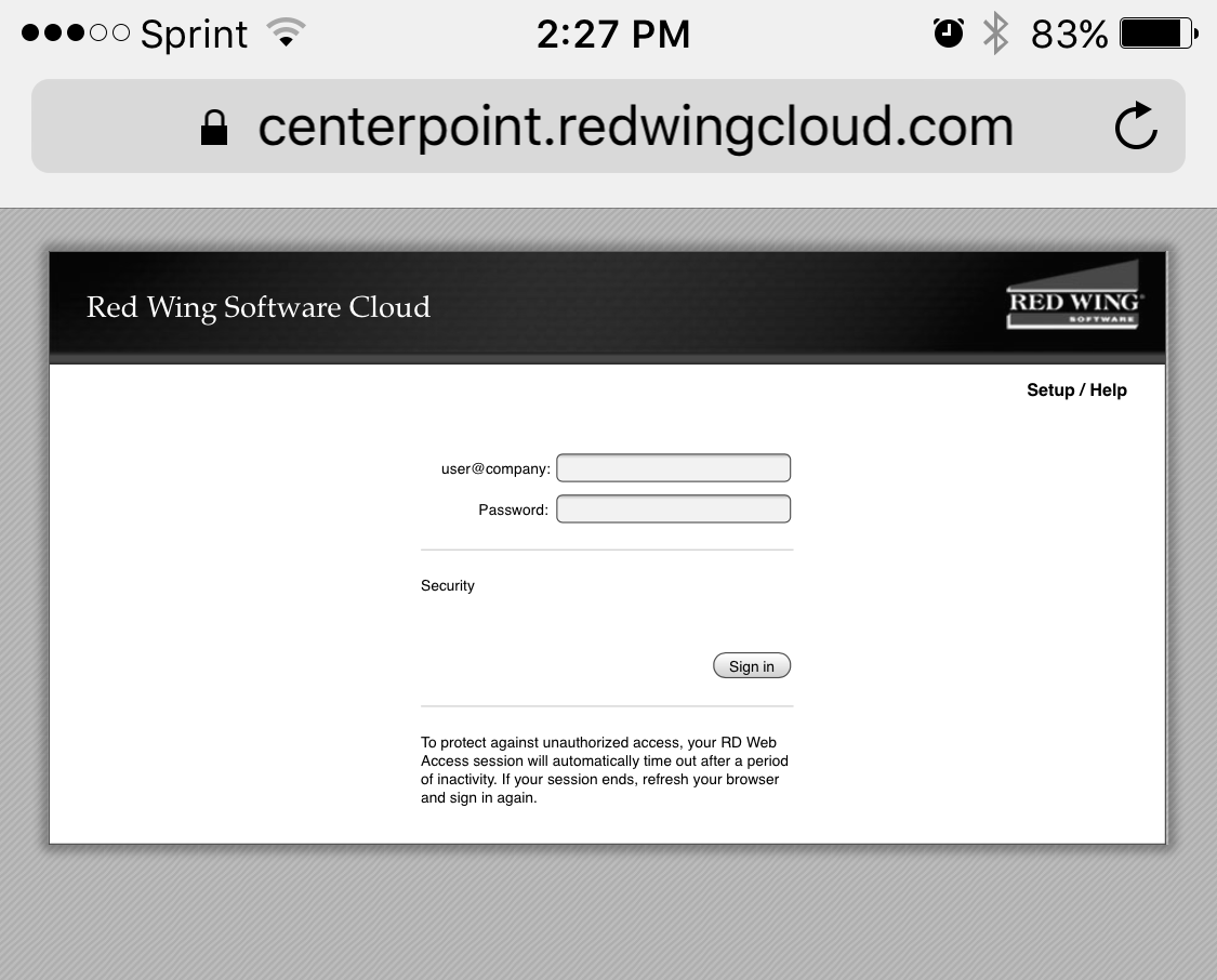 - If your User name and Password do not work here, please contact Red Wing Software Technical Support or contact your company Red Wing Cloud Services administrator to get a new password.