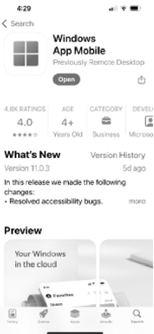 - From the App Store on your Apple device, search for the Windows App Mobile app. The developer is Microsoft Corporation.