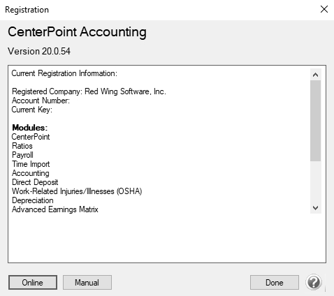 - When CenterPoint is first opened, a Registration screen will display. If the Registration screen is no longer visible, select Help > Product Registration > CenterPoint Registration.