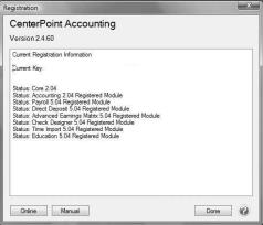 - When CenterPoint is first opened on your computer it will display a Registration screen. Click Online.