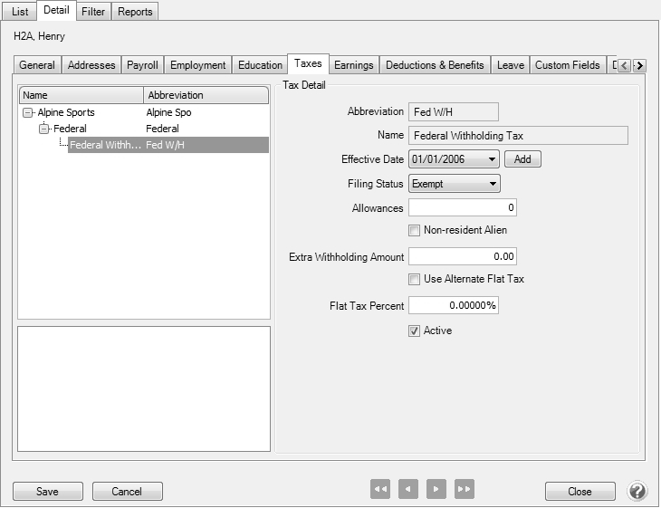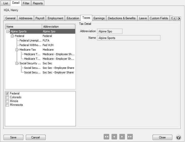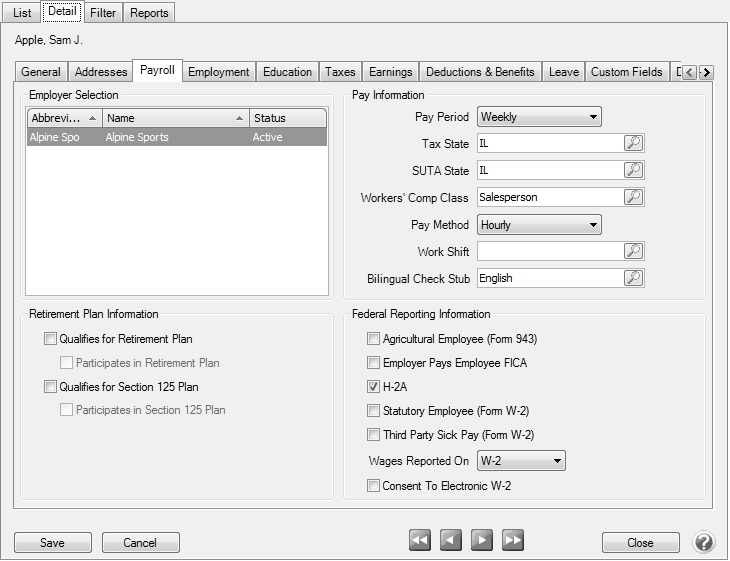 - Select Setup > Employees. Highlight the first H-2A employee and click Edit. Select the Payroll tab.