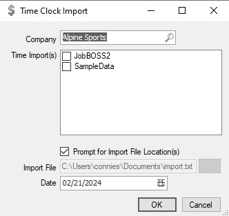 Option 2: Import an Existing Time Import Definition (JobBOSS2, Hand Trak, Time Plus users)