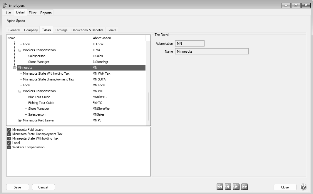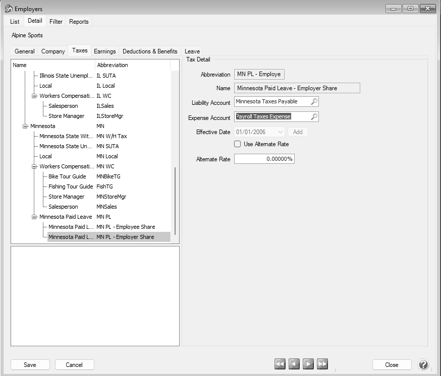 - Expand the Minnesota Paid Leave node and select Employer.