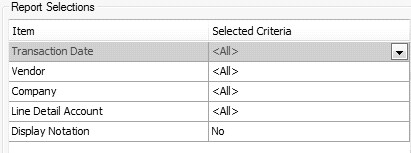 - If you want to view the report by any other report selections, click More Items, select the report selection, click OK, under Report Selections, select the report selection, and then define any specific criteria.