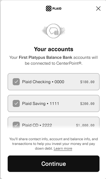 A Plaid account lets you connect your financial accounts to apps and services. Your data is kept safe with best-in-class data encryption and security.