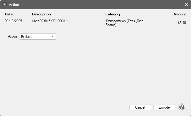 - Add – If you are adding the transaction, choose which account will handle the addition and exclude the transaction from the other account.