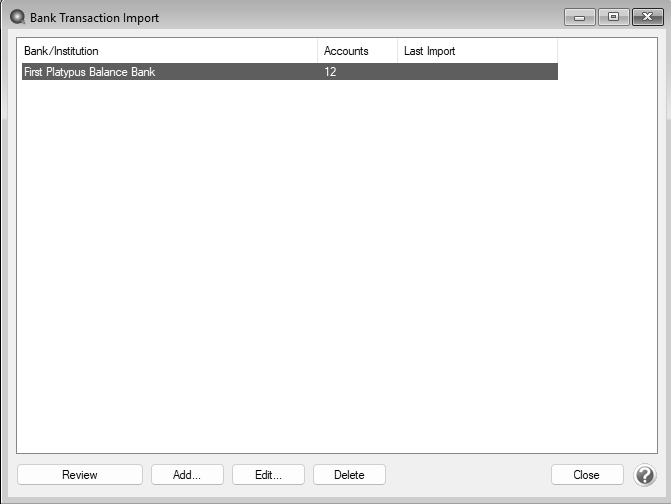 - Double-click the Bank/Institution you want to review or select the Bank/Institution, and then click Review.