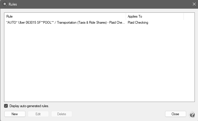 - If you want an auto-generated rule to become a Rule that is always applied, click Edit and define the rule using the Create and Apply Rules/Actions to Transactions section in this document.