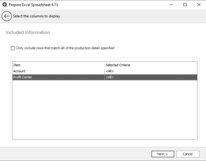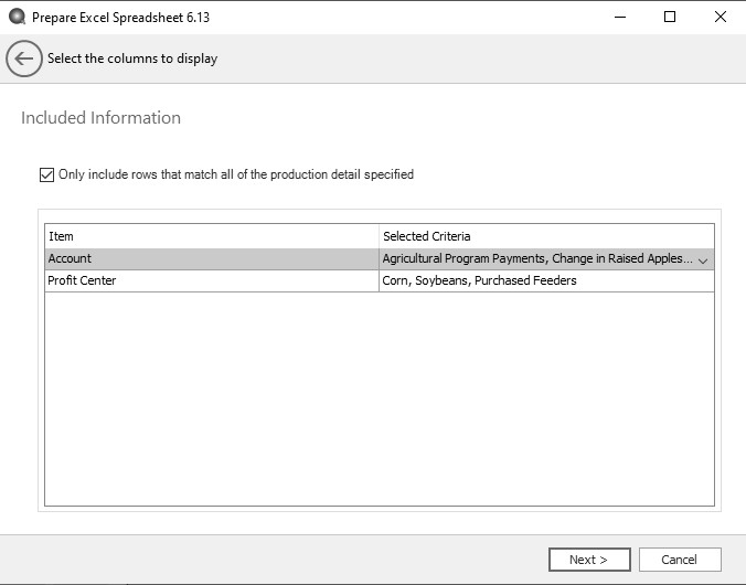 Select Only include rows that match all of the production detail specified to display only the selected in the Filter screen.Click Next.