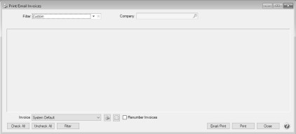 - Use the Print/Email Invoices screen to email a group of invoices after transaction entry.