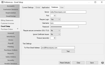 - Select File > Preferences > Email Setup > Email Setup. Select the Database tab.