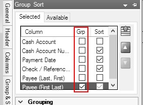 - Select each Column that you would like grouped & subtotaled by placing a check mark in the Grp box.