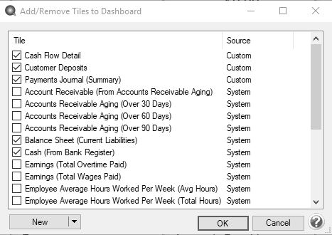- Select the Dashboard tiles you want to display on the Dashboard screen or unselect the Dashboard tiles you no longer wish to display on the Dashboard screen.