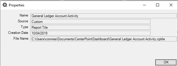 - On the Dashboard screen, right-click on the Dashboard tile you want to display information for, and then select Properties.