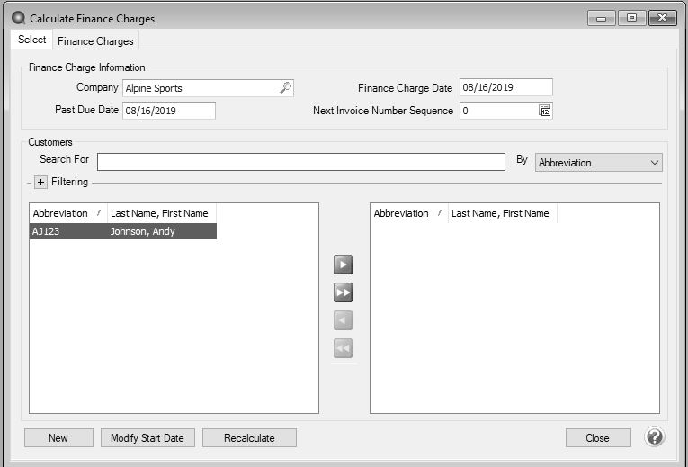 Note: Finance charges calculated and posted prior to CenterPoint version 14.8 cannot be recalculated.
