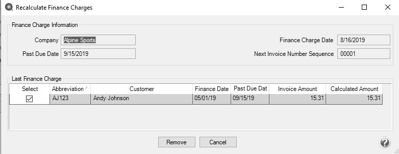 This procedure allows you to remove the last posted finance charge and recalculate finance charges. Finance charges that have already been paid will not be included in the recalculation.