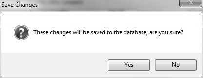 1. At the These changes will be saved to the database, are you sure? message, click Yes to finalize the changes.