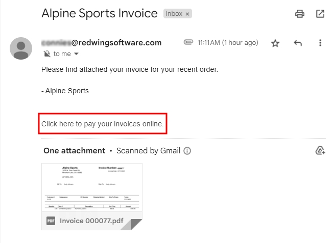The customer will receive an email that contains a link to pay their invoices online.