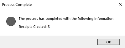 - At the This will generate receipts for all available online payments, continue? message, click Yes.