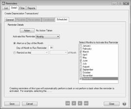 A scheduled reminder can be created if you would like CenterPoint to automatically remind you when depreciation transactions should be recorded,, follow the instructions below.