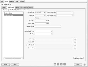 5. Select the Asset Detail tab to complete the applicable item details.