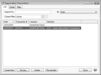 Reverse posted transactions: Select the posted transaction, click Delete, and then click Yes. All depreciation transactions for the company/fund and date will be reversed.