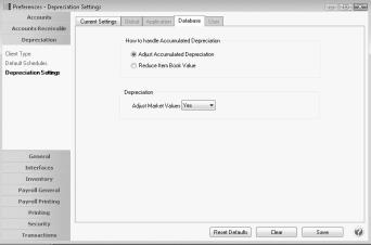 1. Select File > Preferences > Depreciation > Depreciation Settings.