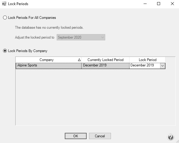 - Select whether you want to Lock Periods for All Companies or Lock Periods By Company.