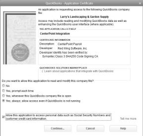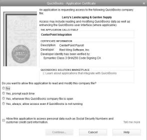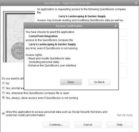 - At the Are you sure you want to give this app access to your data even when QuickBooks isn't running? message, click Yes.