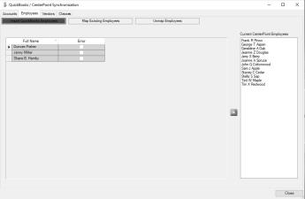 - Select the QuickBooks employee that you wish to assign an equivalent (map) CenterPoint employee to.