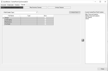 - Repeat the process of assigning a profit center type to all classes you want to transfer from QuickBooks to CenterPoint.