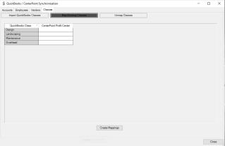 - QuickBooks classes map to CenterPoint profit centers.