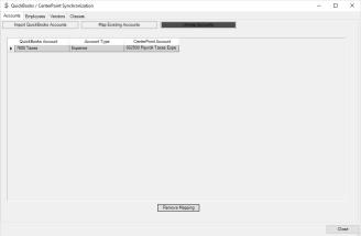 Items (Accounts, Employees, etc.) previously mapped can be unmapped by using the Unmap button on each of the respective tabs.