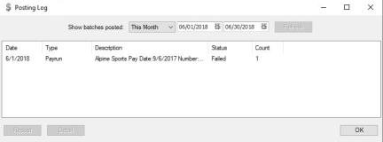 - A list of pay runs that have attempted to post to QuickBooks will be listed.
