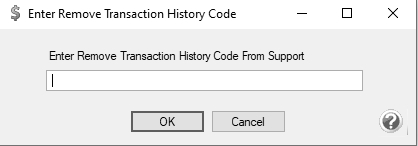 - Call the Red Wing Software Technical Support department and discuss the Remove Transaction History process. Once the Customer Support Technician ensures a back up is in place, you will be provided with a code.