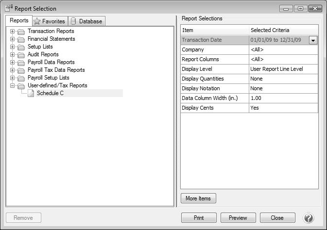 - In the Report Selections, choose Schedule C in the Report field.