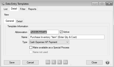 - In the Name box, enter Purchase Inventory "Item" (Enter Qty & Cost).