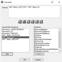 In the Calculate screen, select #AP / Bank_UNITCOST, click Add, click