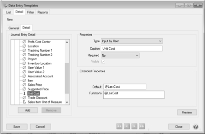 - In the AP / Bank section, select Unit Cost and change the Type to Input By User, and then change the Default to @LastCost.