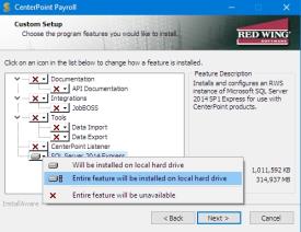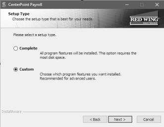 A: Yes. In some network environments you may want to install CenterPoint Payroll without installing SQL Server Express. During the installation of CenterPoint Payroll, on the Setup Type screen, select Custom, click Next,