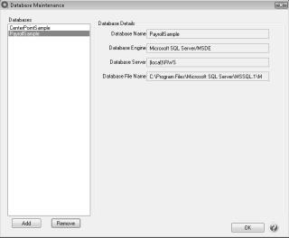 - On the Database Maintenance screen, click Add in the bottom left corner.