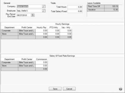 5. Verify the Leave Available grid. The grid displays one row for each active paid leave item associated with the selected employee, including how much of that leave is available for use. The available leave is for reference purposes only and does not adjust itself to reflect any leave hours entered into the Hourly Earnings or Salary & Fixed Earnings grids.