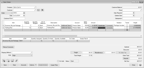 The Sales Order module is used to prepare quotes and manage orders received from customers. Once the goods and/or services have been provided to the customer, the fill and invoice process will deduct the items from inventory and prepare an invoice to bill the customer.